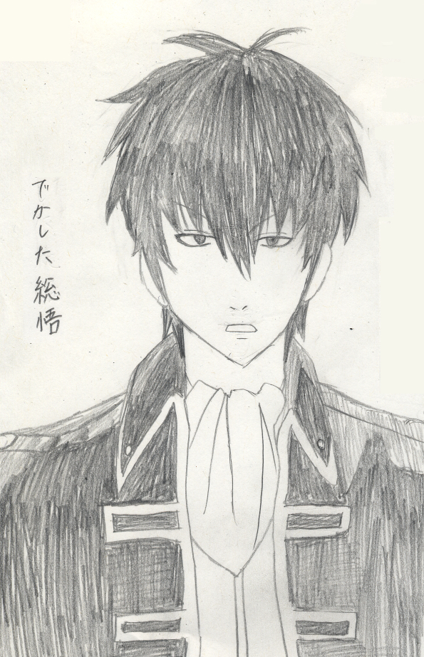 鉛筆で土方を描いてみました。沖田を褒めるなんて珍し〜(やらせ